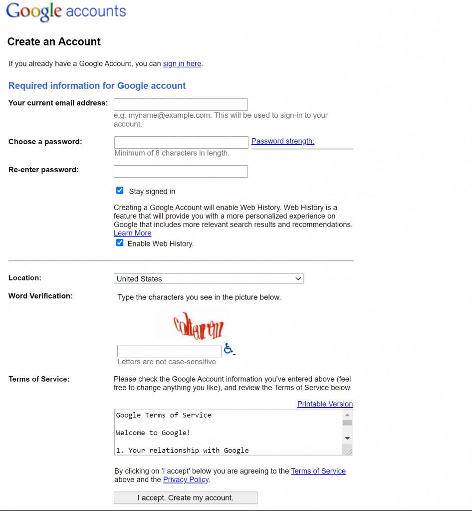 2006: The Classical Google Registration Form
